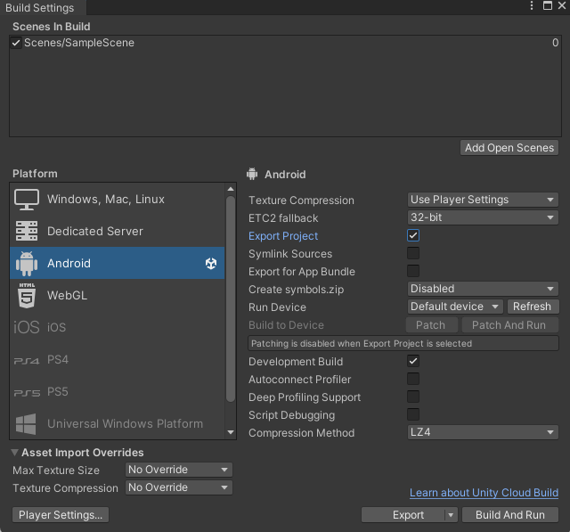 - Depending on the Unity version delete unity-classes.jar file from the Plugins/Android folder if it causes duplicated method issues. In Unity 2021.3.18 it needs to be deleted.